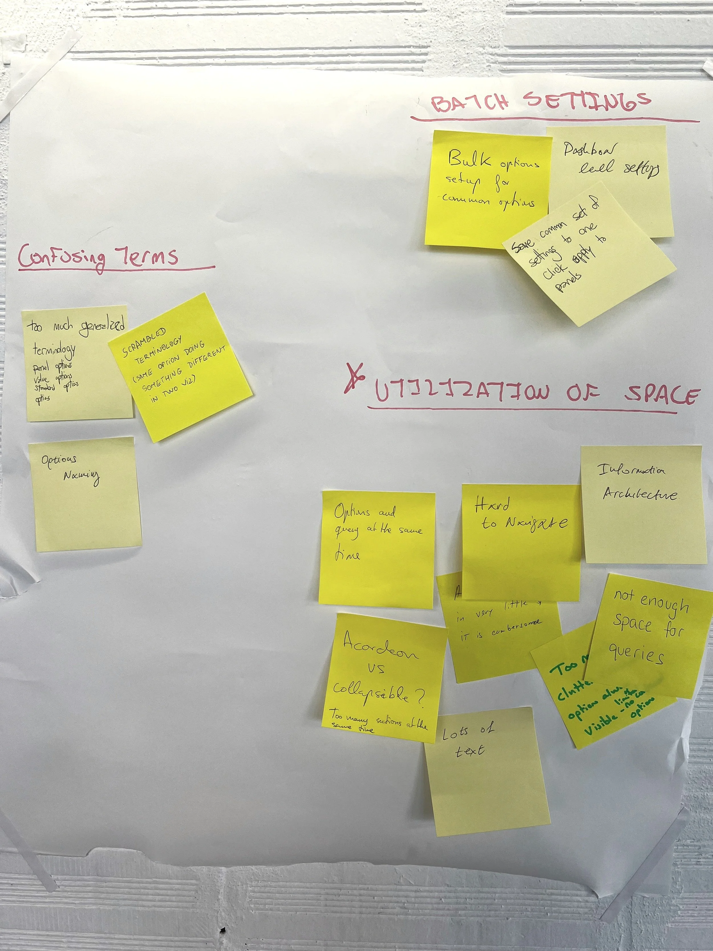As each group shared, myself and a collegue actively affinity mapped the topics into large clusters to create a concise list of trouble areas. Amazingly, all the groups focused on are similar themes. After this, we discussed potential solutions and captured all of this.